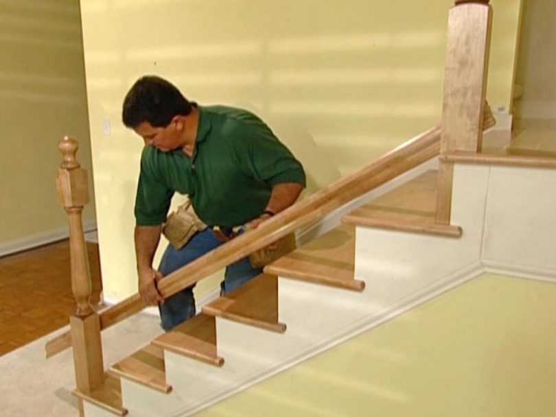 Основание аккуратным образом убирается, саморезы откручиваются. Готовые поручни крепятся к перилам через образовавшиеся отверстия. Установить конструкцию нужно строго по центру.
