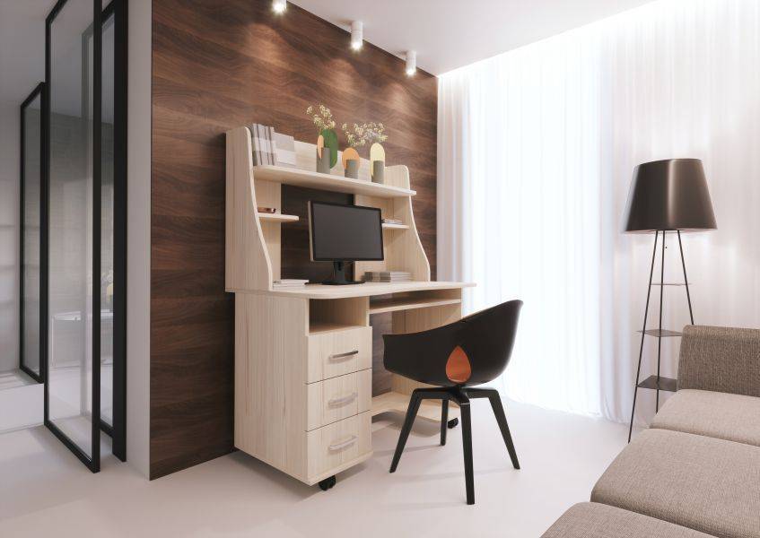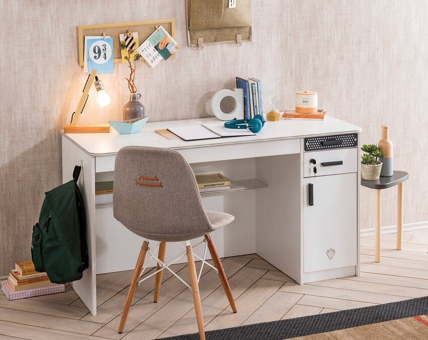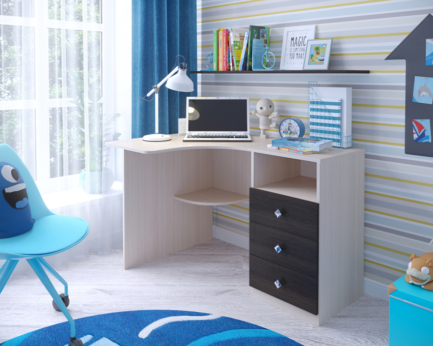 Станет отличным решением для оформления детской для ребенка школьника, комнаты для студента или домашнего кабинета. Благодаря выдвижным ящикам получается хранить под рукой самые нужные для работы вещи и предметы.