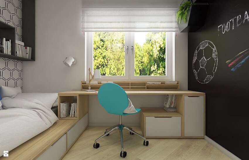 Что касается полезного декора — уберите со стола предметы, не имеющие отношения к учебе. Дополните обстановку полезными и интересными аксессуарами: настенными атласами, планами, записками и т.д. Для младшего школьника не стоит устанавливать огромные стеллажи и полки для книг. Начните с нескольких полок в районе рабочего стола и по мере взросления дополняйте учебную зону другими полками.