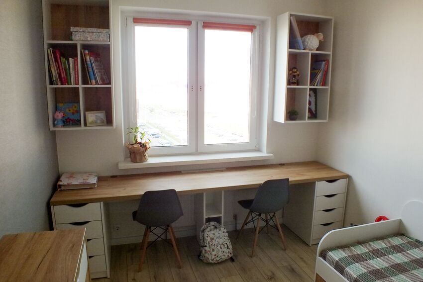 Если в одной комнате живут два ребенка-школьника, то необходимо обеспечить каждого из них комфортным учебным местом. Мы рассмотрим вариант изготовления удобной конструкции на двоих своими руками.