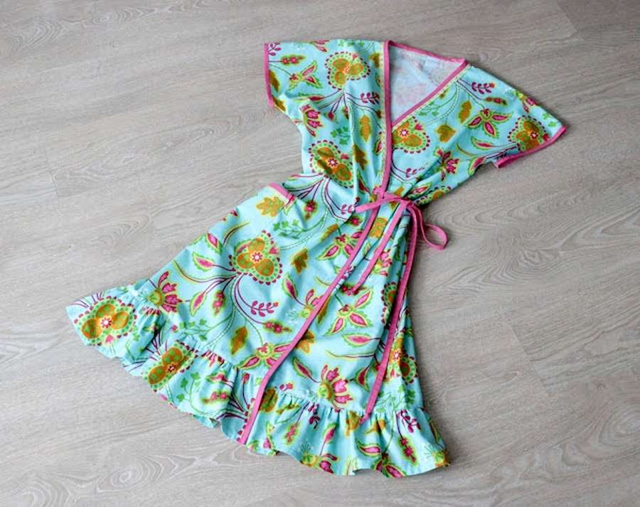 Простая модель халата с запахом удобная в носке и шьется быстро и просто даже без выкройки.