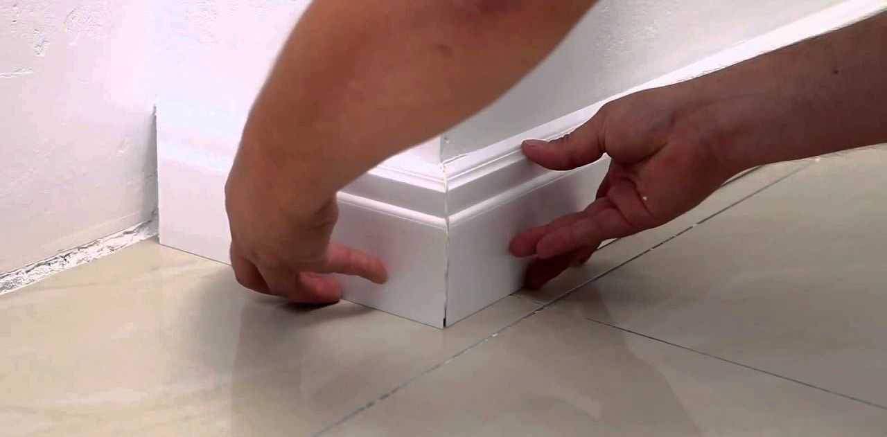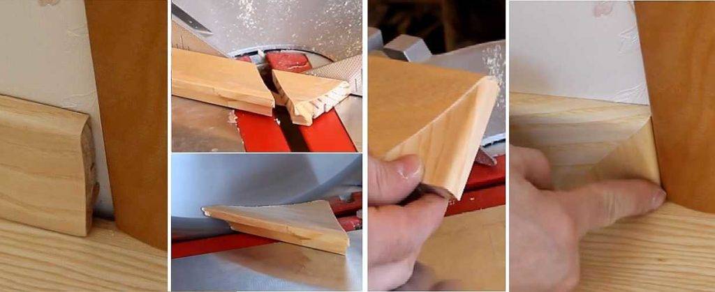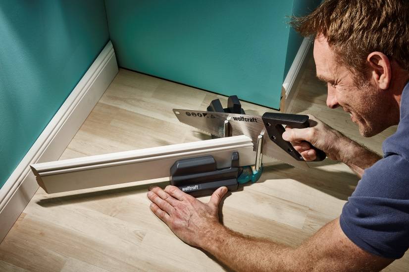 Если плинтус плоский и прикладывается к стене всей своей поверхностью, тогда всё ясно. Но если его нижняя часть немного больше или его устанавливают под углом, тогда в подрезке краёв возникают определённые нюансы.