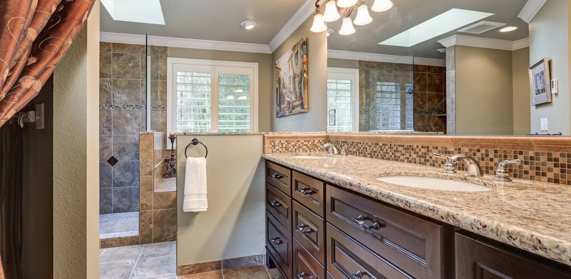 Для ванной подходит коричневый цвет любого оттенка, выполненный под натуральный камень, дерево. Хорошо смотрятся песочные оттенки, с их помощью создайте целое панно возле раковины или душевой. Сочетается с лавандовым, лазурным, розовым.