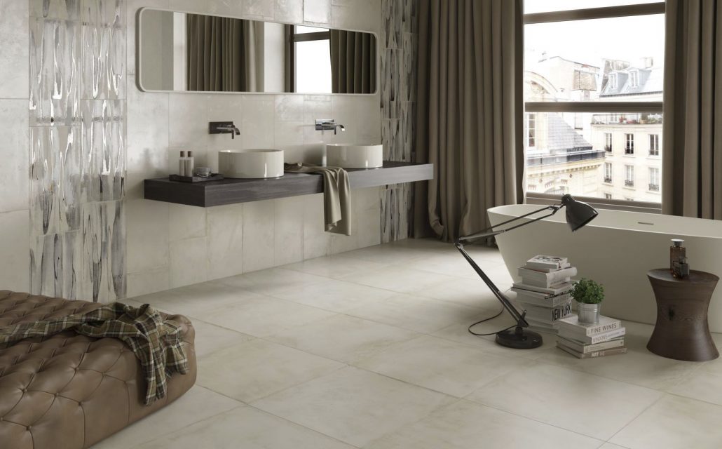 По составу керамогранит напоминает фосфор, но внешне он очень похож на камень. Данный вид плитки прекрасно переносит температурные перепады и обладает абсолютной прочностью. Поэтому её используют для декорирования пола и применяют для наружных работ. Керамогранит не впитывает влагу, что даёт огромный плюс данному виду покрытия при отделке ним ванной комнаты.