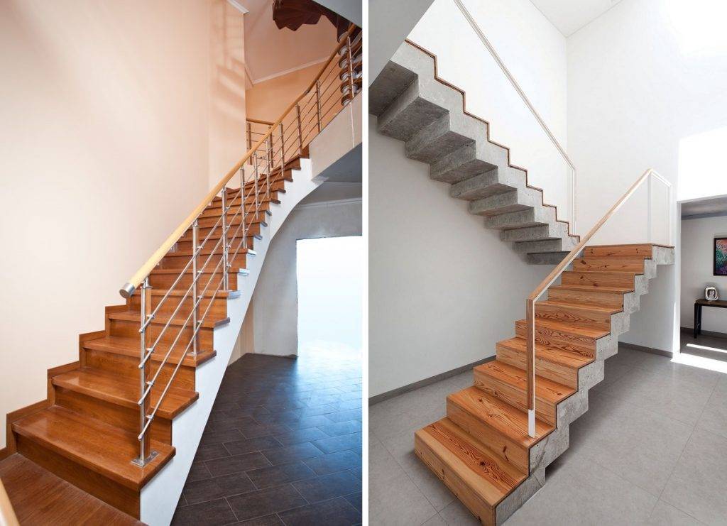 Древесина — теплая на ощупь, и помещение она визуально делает более теплым. Она является пружинистым материалом, хорошо амортизирует падения. Древесину охотно используют из-за ее пластичности и легкости в обработке: ее можно приспособить для ступеней любой формы.