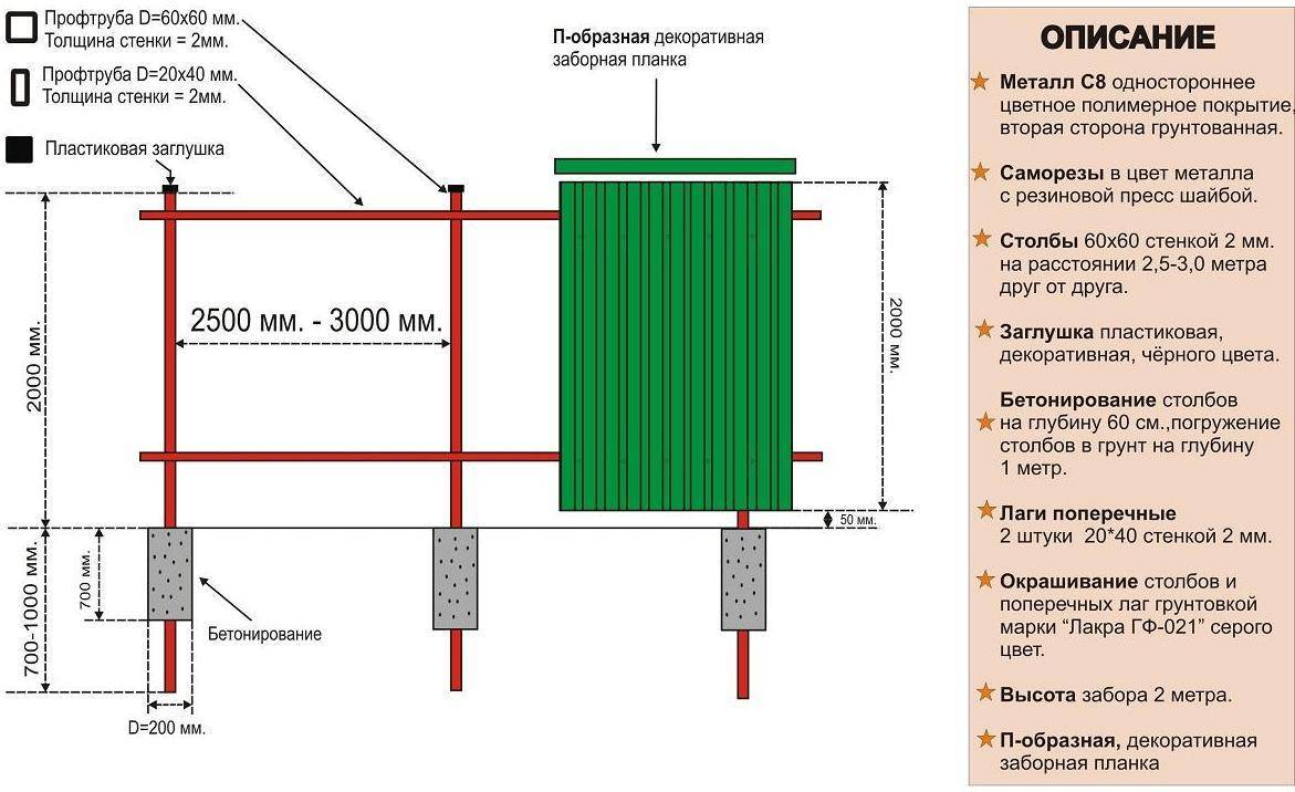 Каждый из представленных типов заборов имеет отличительные особенности и подходит под конкретные условия эксплуатации. Однако ограждения также имеют общие параметры, которые представлены ниже: