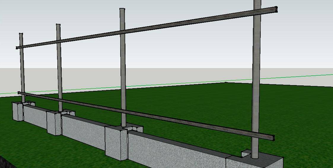 - В качестве фиксирующего каркаса под забор из сетки сварной применяются металлические опоры, которые фиксируются между собой посредством железной арматуры.