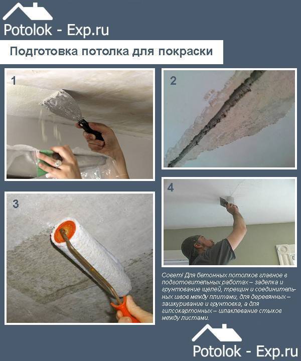 Сначала необходимо подготовить поверхность стен и потолка. Такая подготовка будет зависеть от того, на какое основание будет наноситься краска.