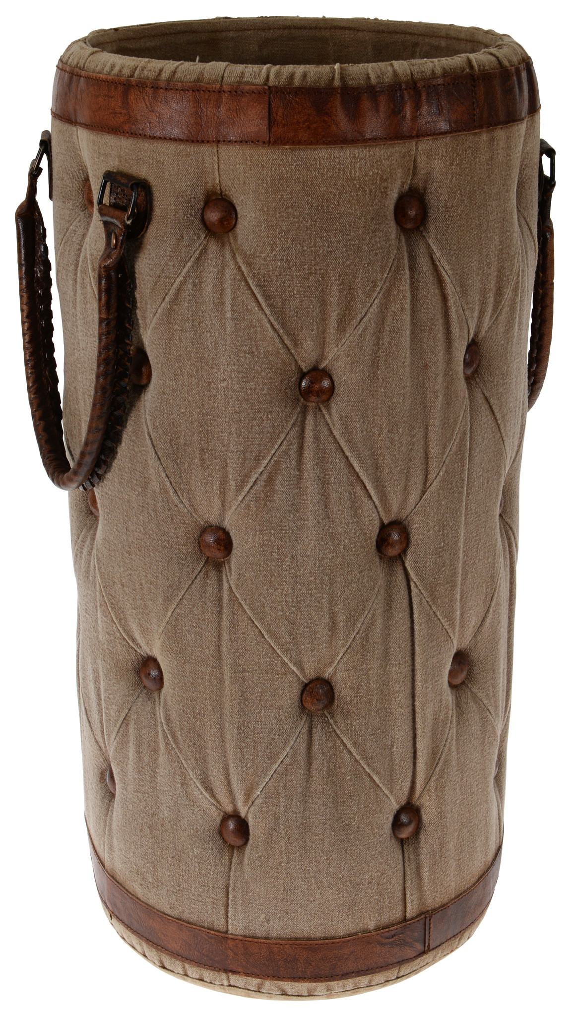 Роскошно выглядят стойки с кожаными деталями. Обычно их сочетают с деревом, стеклом или металлом. Кожаные зонтницы, в основном, не отличаются сложностью формы. Чаще всего это цилиндр, напоминающий тубус.