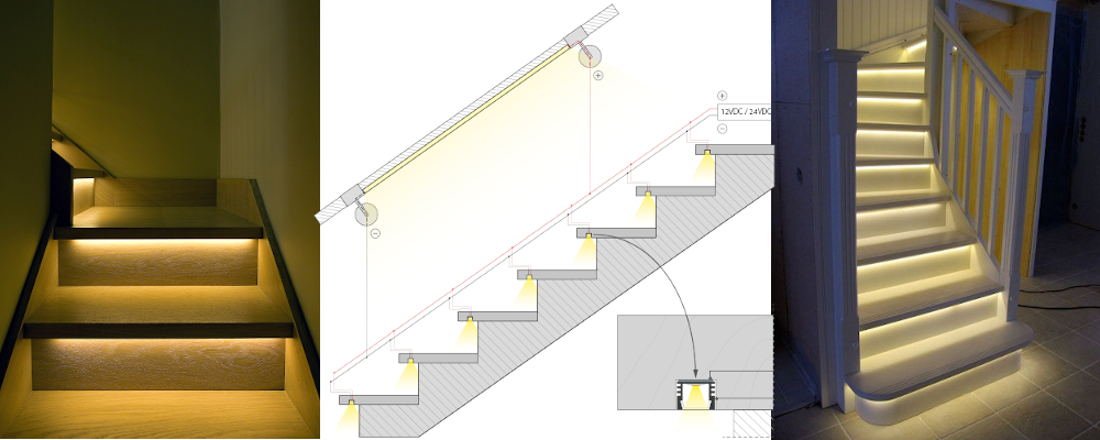 Мы рекомендуем вам сделать освещение лестницы своими руками следующим образом: