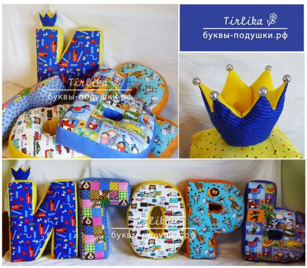 Многие полагают, что подушки-буквы, складывающиеся в имена, шьют для девочек, и в основном на выписку из роддома. Да, такая идея очень популярна – фото счастливой семьи на фоне интерьерных подушек. Однако спрос на подушки-буквы есть не только у этой целевой аудитории. Для мальчиков такие подушки шьют ничуть не реже, в соответствующей цветовой гамме и с подходящей атрибутикой в виде корабликов, машинок и прочих «мужских» деталей.