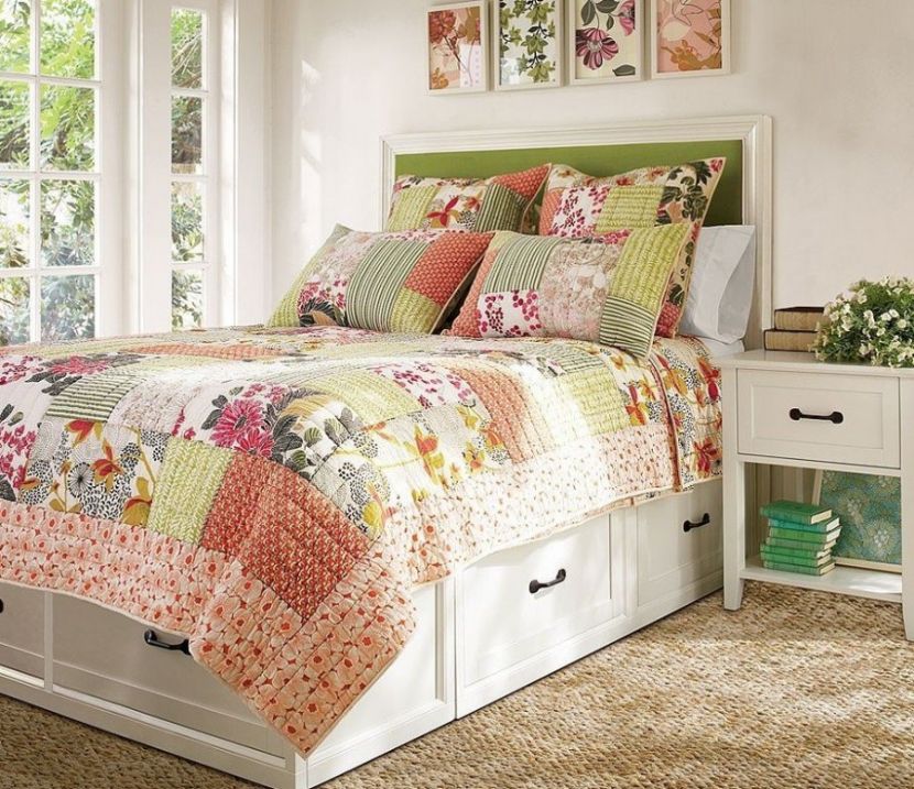 - Прованс. Актуально применение сатиновых и хлопковых покрывал на кровать, дополненных яркими флористическими узорами, вышивкой.