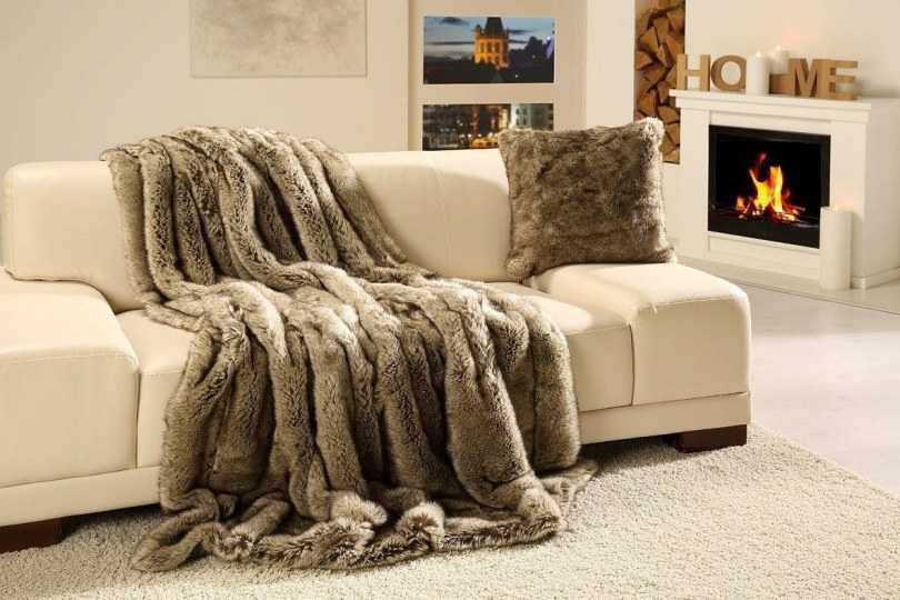 - Лофт. Для этого стиля отлично подходит покрывало из меха или полиэстера, допустима прострочка, имитирующая форму кирпичей, камней. Предпочтительны черные, бежевые, красно-коричневые оттенки.