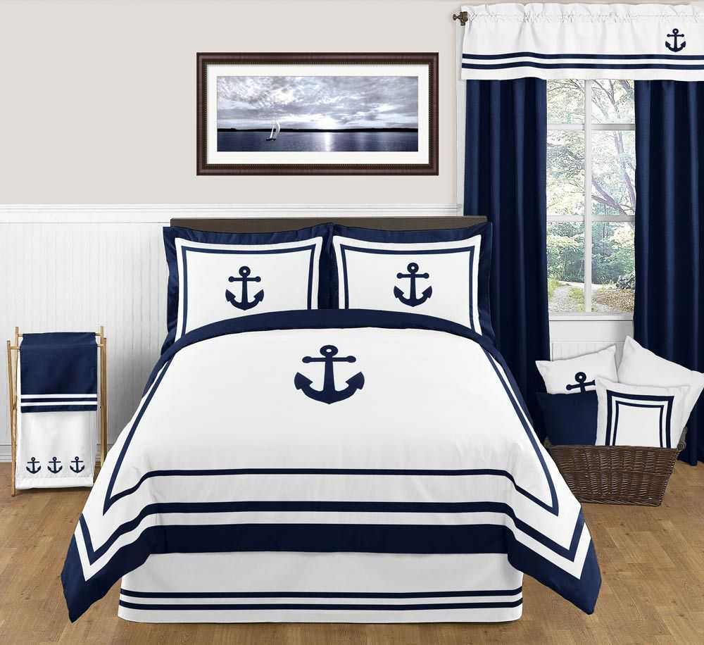 - Морской. Наибольшей популярностью пользуются принты в виде широких и узких полосок. Отлично впишутся грубый вязаный плед, декор в виде сложных узоров, вышивок.