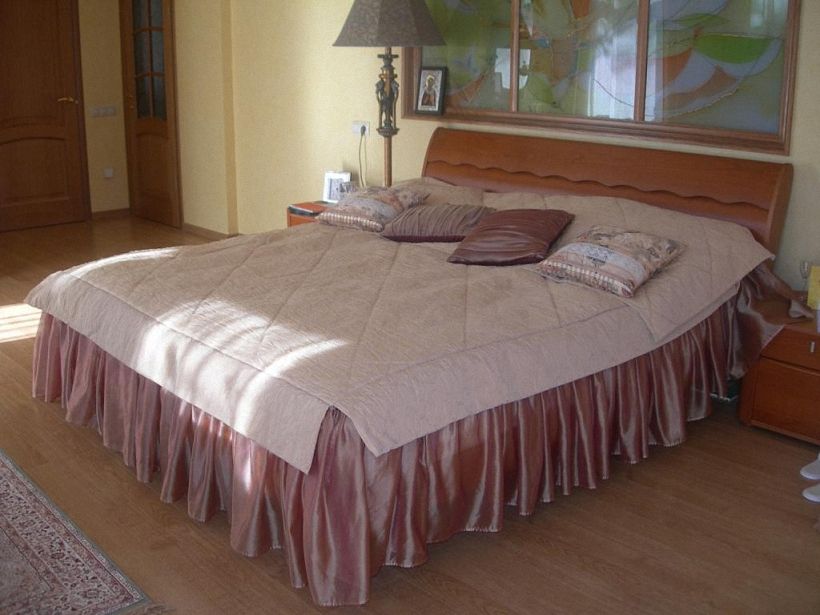 Данный декор всегда смотрится очень роскошно и дорого. Драпированный, плиссированный или строгий подзор, пришитый по периметру изделия, эффектно свисает, скрывая кроватные ножки.