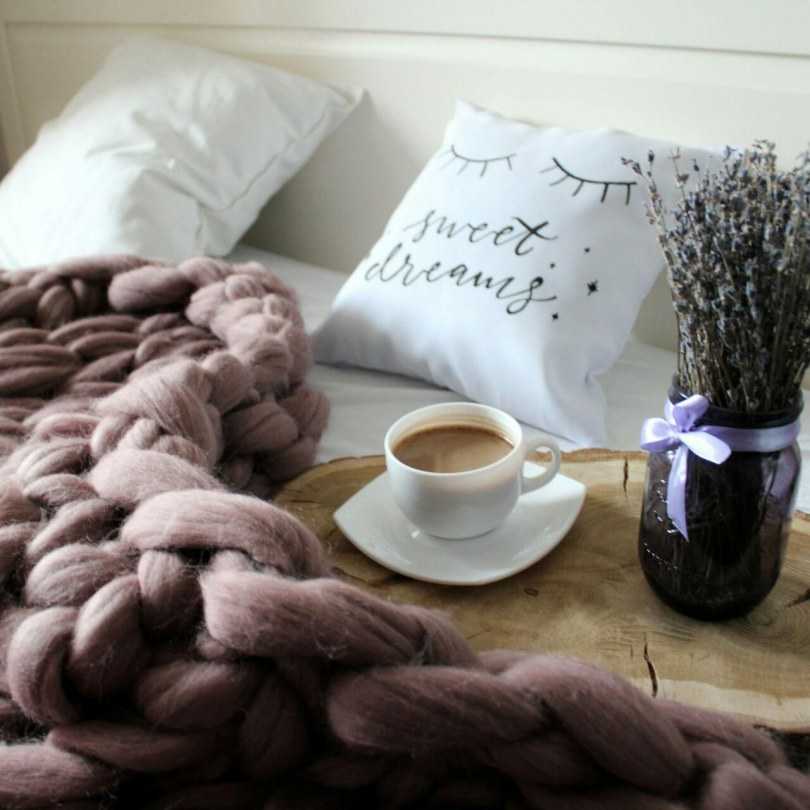 Можно использовать один цвет, и при этом разные узоры, или комбинировать несколько сочетающихся цветов; а можно смешать много цветов , например, связав плед из остатков пряжи спицами, создать уникальный пестрый вязаный узор в стиле печворк.