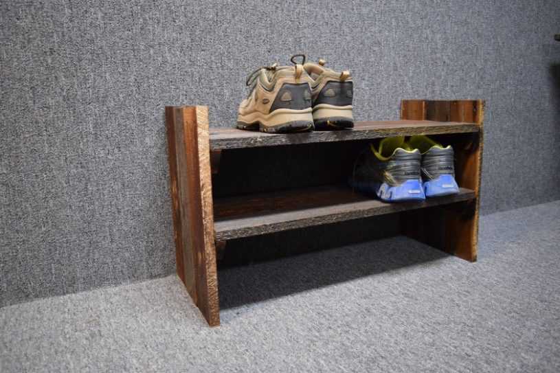 Стандартные модели обувниц по ширине 30-40 см. Но если прихожая узкая, вмещают конструкцию глубиной 20 см. При этом ширина полки может быть 30-40 см, для удобства ее располагают под углом. Длина конструкции стандартная — 60-120 см и зависит от параметров прихожей. Высоту делают до 2 м. Стильная высокая обувная полка впишется в интерьер стиля лофт.