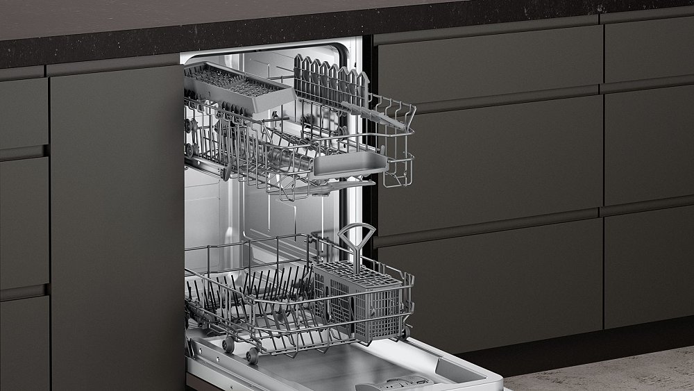 Размер посудомойки — особенность, которую стоит учитывать в первую очередь, если у вас небольшая кухня. Учтите, что узкие мойки могут быть шириной не только 45 см, но и немного меньше или больше — на пару миллиметров. Если каждый сантиметр на вес золота, стоит это учитывать.
