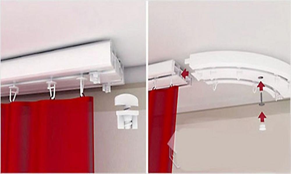 Главное, что нужно знать — подойдут только карнизы в виде плоских шин, их можно крепить к любой поверхности.