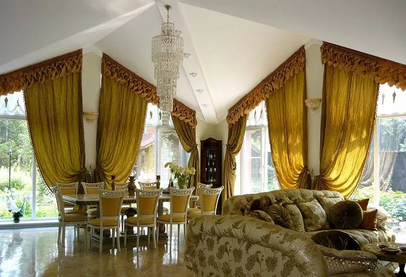 - Занавески с ламбрекенами подвешивают на трехрядные системы.