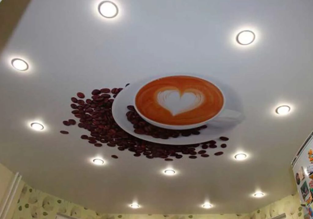 В том числе существуют натяжные потолки с фотопечатью, которые могут дополнить ваш интерьер. Часто в каталогах есть много предложений, но если у вас уже есть идея рисунка, можно заказать натяжной потолок с печатью вашего дизайна.