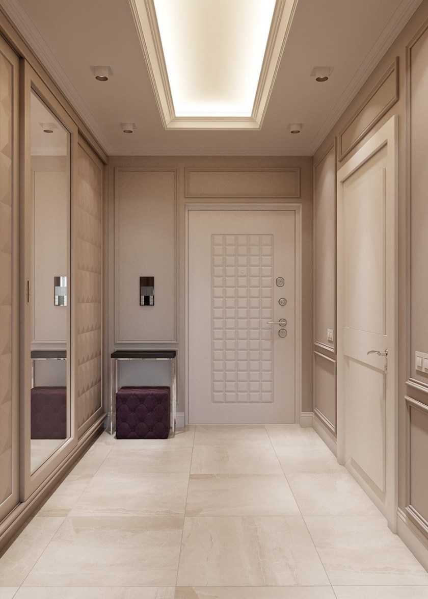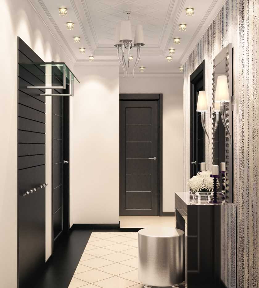 приветствуется соблюдение прямых линий в узком пространстве, что позволит зрительно удлинить проход ко входной двери;