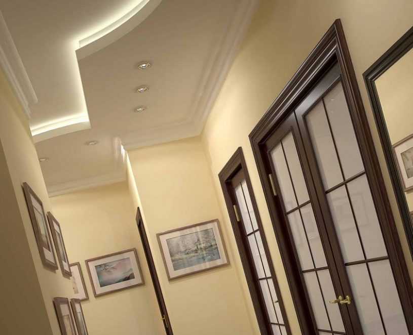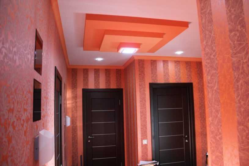 Обратите внимание! В интернете есть множество различных фото потолков из гипсокартона в коридоре. Подвесная установка монтируется на специальный каркас
