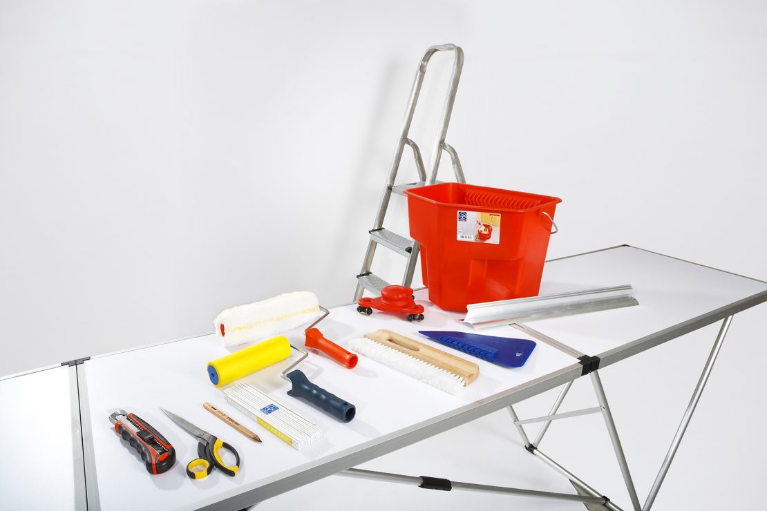 - уровень; дрель с набором сверл.