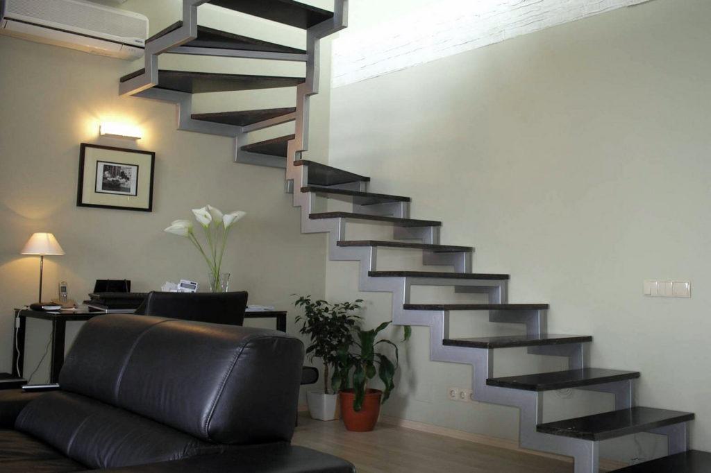 - Металлические конструкции возводятся спустя 1-1,5 года после завершения строительства дома. Здание должно дать усадку, иначе есть риск деформации лестницы.
