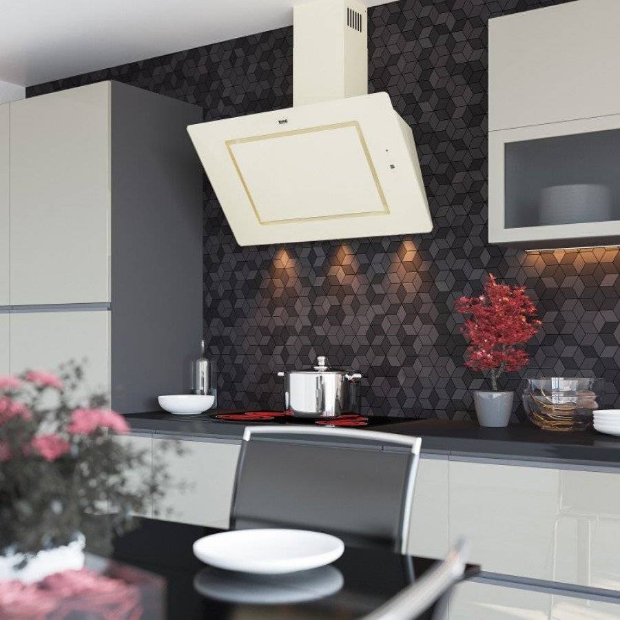 Наклонные вытяжки незаменимы в миниатюрных помещениях, где остро стоит вопрос о максимальном сохранении свободного пространства. При монтаже наклонной вытяжки над газовой плитой требования несколько отличаются. Нижний край поверхности должен находиться на расстоянии 55-65 см от газовой печи. От индукционной или электрической плиты потребуется отступить лишь 35-45 см.