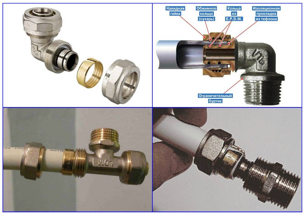 Рис. 6 Компрессионные фитинги – конструктивное устройство и использование
