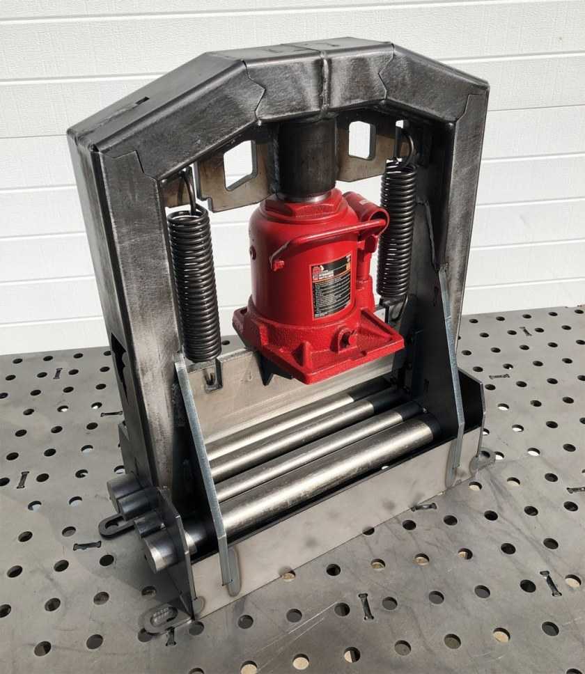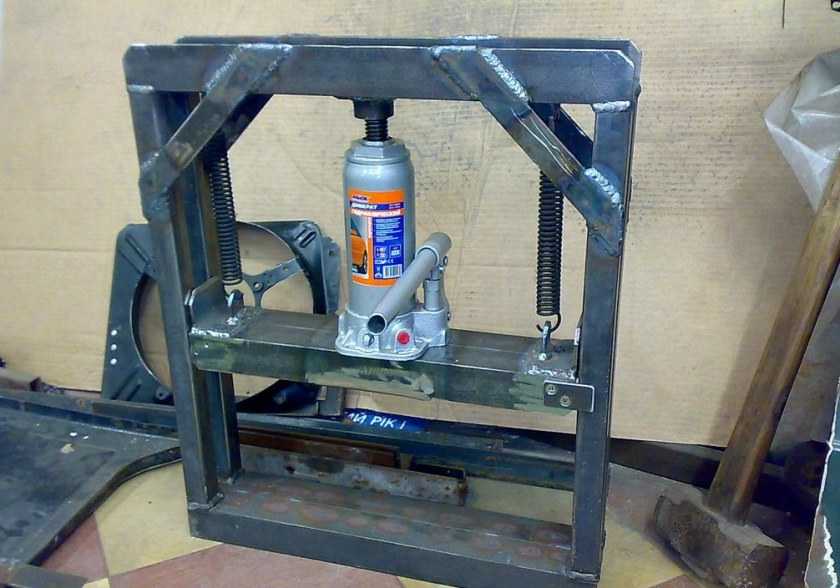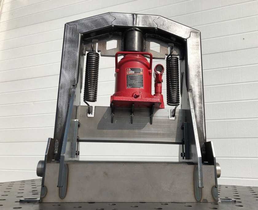 Главным силовым агрегатом рассматриваемой установки является гидравлический домкрат. Ранее упоминалась необходимость использования оттягивающих пружин. Можете взять дверные пружины, пружины от передних кресел машины и любые другие, подходящие под заданные требования.