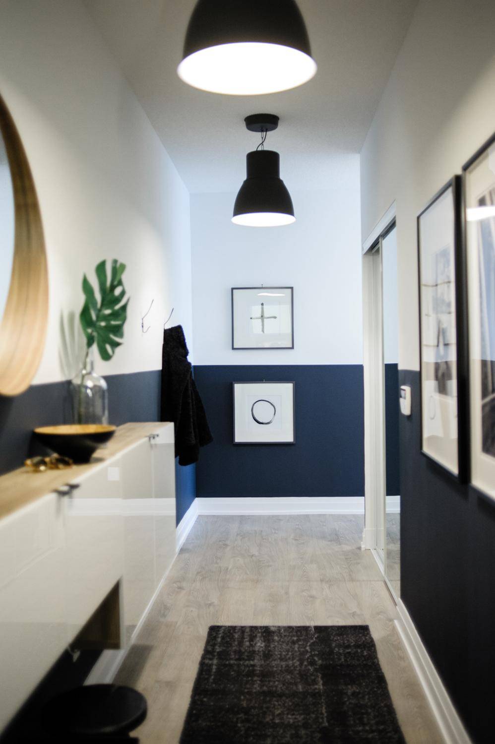 Контрастные зеленые, оранжевые, красные или желтые вкрапления несомненно привлекут к себе внимание. Насыщенные детали не должны быть сгруппированы, их лучше распределить по периметру коридора, чтобы не нарушить оттеночный баланс в комнате