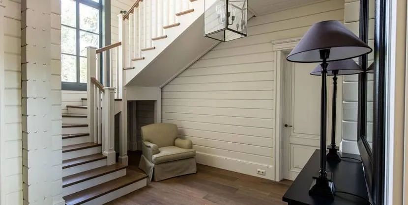 Создавая дизайн в стиле кантри, скандинавском или прованс, стоит отдать предпочтение не слишком ценным, но светлым и красивым породам дерева. Хорошо будет смотреться, к примеру, берёза. С белыми перилами и отделкой она будет выглядеть наиболее интересно. Для классики лучше взять ценные породы дерева, которые подходят к такому стилю.