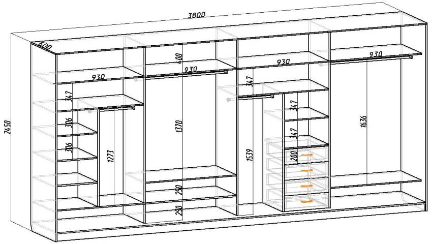 Чертеж с размерами купейного шкафа в прихожую своими руками