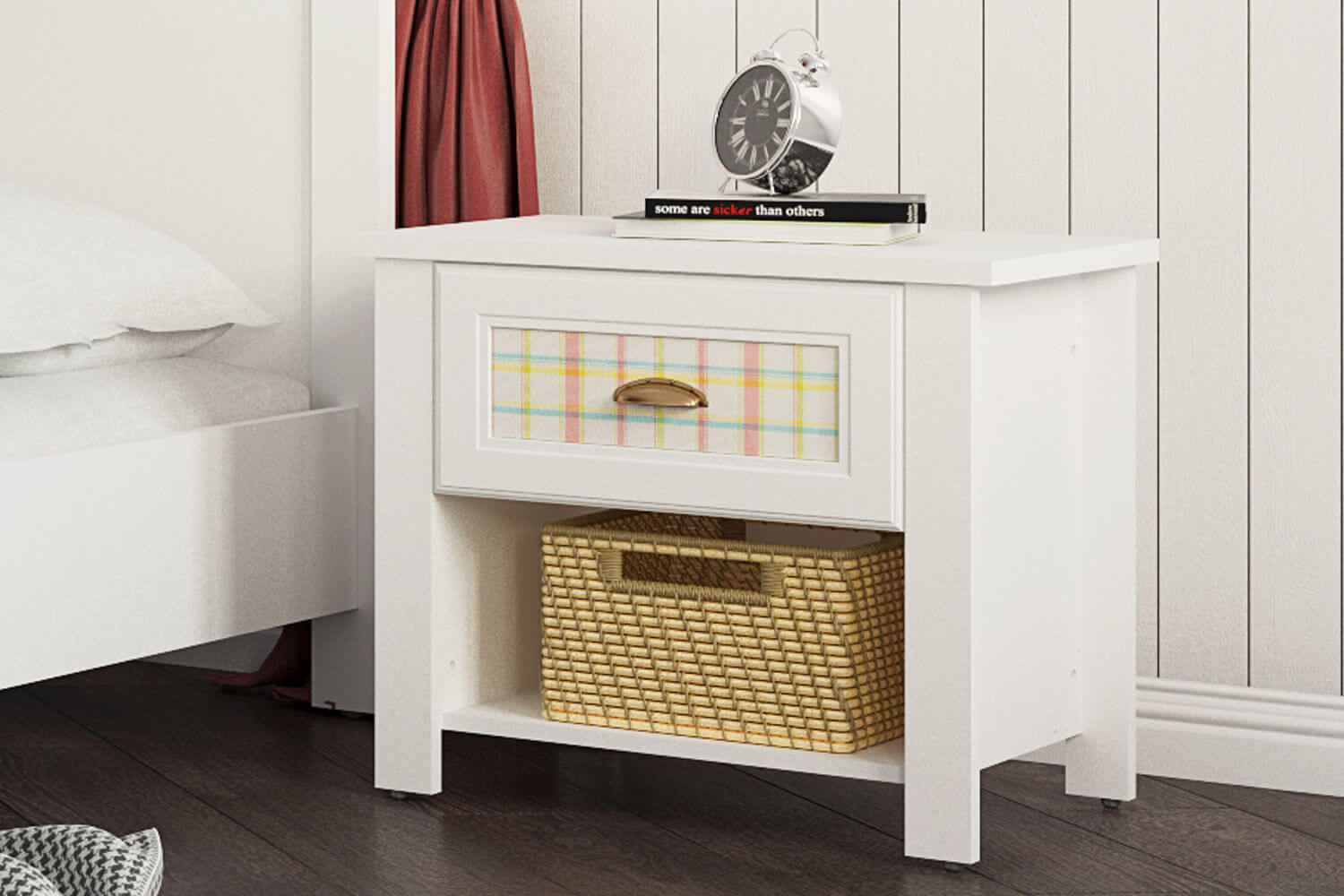 Если дверца одна, то лучше, если она будет распахиваться по направлению от кровати. Так фасад не будет перекрывать вам пространство внутри тумбы. Очень удобны дверцы с системой открывания касанием. В этом случае не придется тянуться до ручки, лежа в кровати.