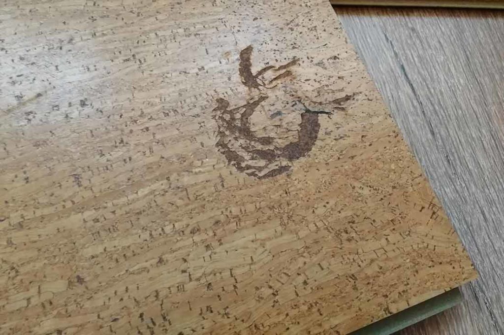 Как и любой материал, пробковый пол имеет свои недостатки. Минусы такого покрытия, это высокая стоимость и плохая устойчивость к механическим повреждениям. Пробка не терпит воздействия острыми предметами и деформируется при точечных силовых нагрузках. На ножки столов и стульев придется установить прокладки, снижающие давление на покрытие. Пробковый пол не переносит наличие твердого мусора, который легко вдавливается под весом человека, а также использования домашней обуви с резиновым основанием.