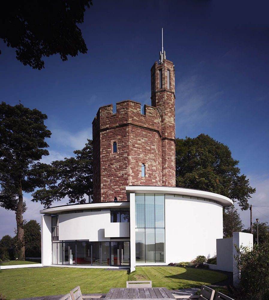 - круглой, созданной в качестве жилой комнаты. Очень часто именно в них монтируют винтовые лестницы, ведущие на верхний этаж или мансарду. Стены такой башни увенчаны небольшими оконными проемами. Новым веянием в строительстве домов является возведение стеклянных башен. Это направление только зарождается, приобретая все большую востребованность;