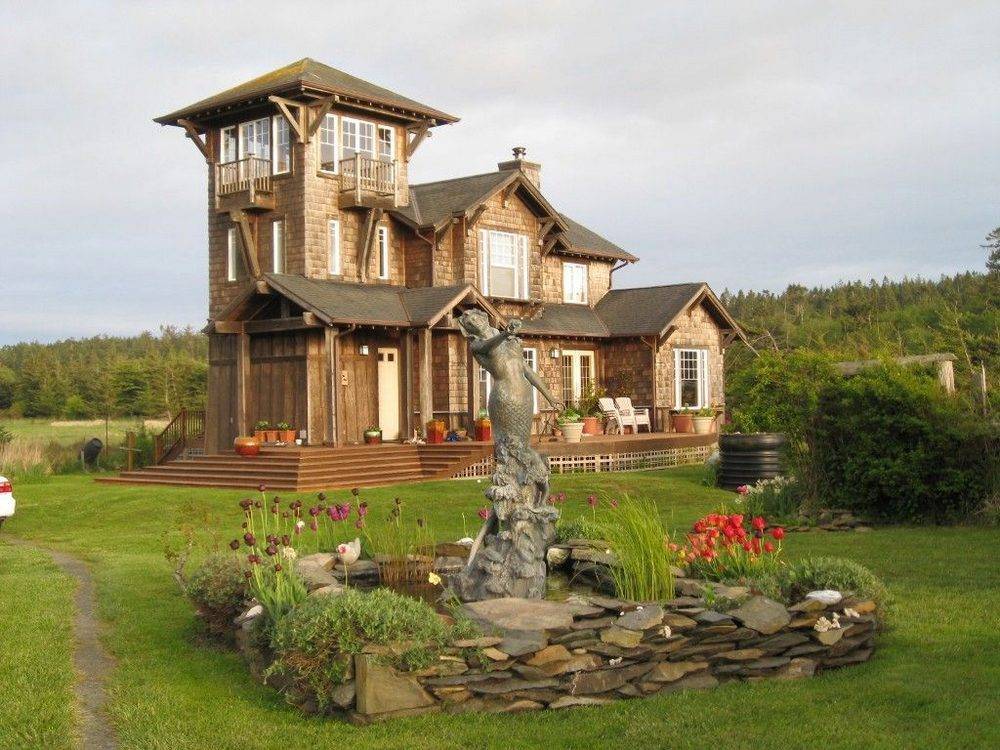 При таком решении дом смотрится как настоящий замок уменьшенных размеров