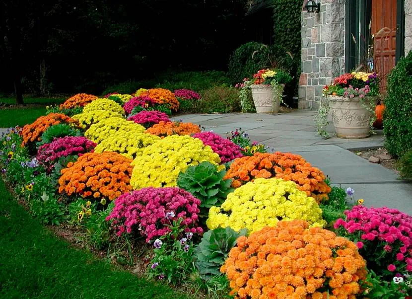 Яркий миксбордер возле входа в домИсточник grounde.ru