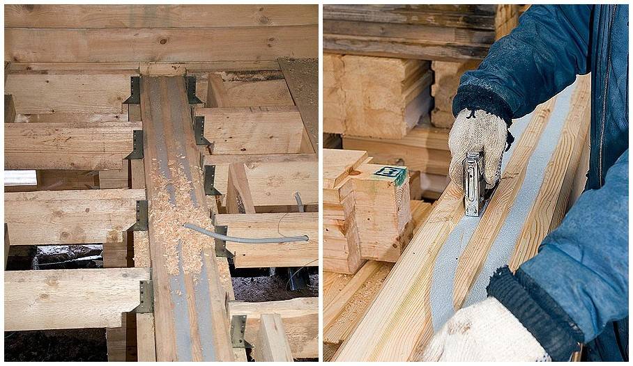 Строительство несущей стены нужно начинать с вырезания паза в самом нижнем элементе возводимой конструкции. После этого в паз следует уложить другой брус с необходимостью соединения с предыдущим при помощи обычного утеплителя из джута, палки, либо мха. Нижний брус объединяется с фундаментом посредством оборудования гидроизоляционной прослойки.