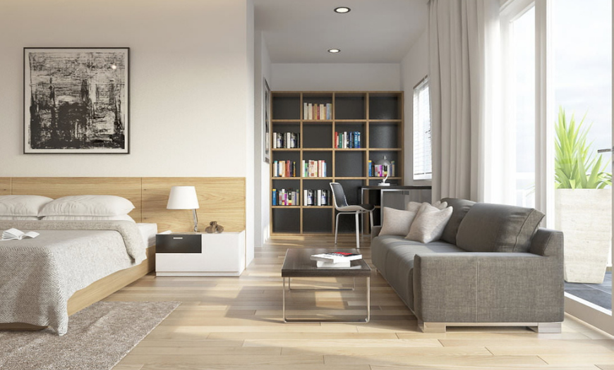 Чтобы одно помещение в квартире выполняло сразу несколько функций, его следует разделить на зоны. Используйте оттенки цвета, перегородки, портьеры, мебель.