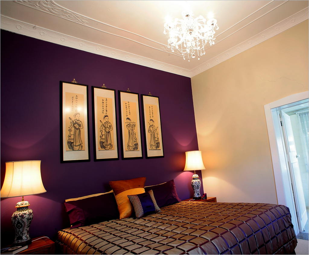 Правильная комбинация цветов при оформлении стен спальни. Предпочтение следует отдать двум оттенкам – темному и светлому