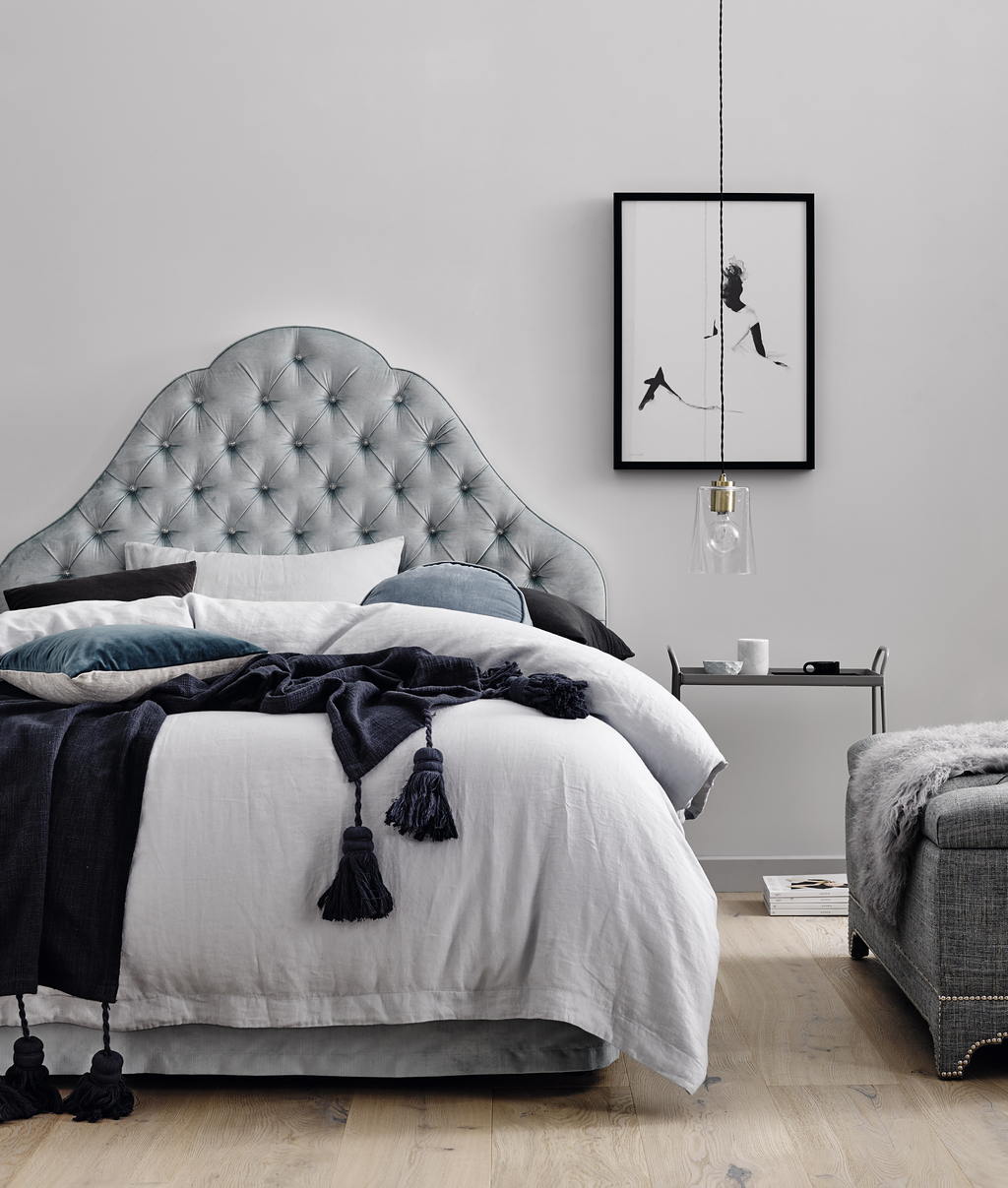 Любая спальня в современном стиле начинается с выбора кровати. Она должна быть комфортной, но в то же время лаконичной. Вместо кованого и причудливого изголовья выберите мягкое. Основным дизайнерским элементом будет выступать постельное белье и другой текстиль, и тканевое изголовье станет частью этой композиции.