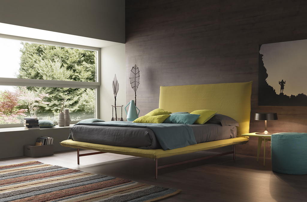 Вероятно, у вас сложилось ощущение, что в моде сегодня интерьер спальни лишь в нейтральном и экологически чистом стиле, однако также стало модно возвращаться к природным мотивам и ярким брызгам цветовых решений, очень популярно использование жёлтого, фиолетового, голубого, и их оттенков, характерных для 60-м – 70-м гг. прошлого века.