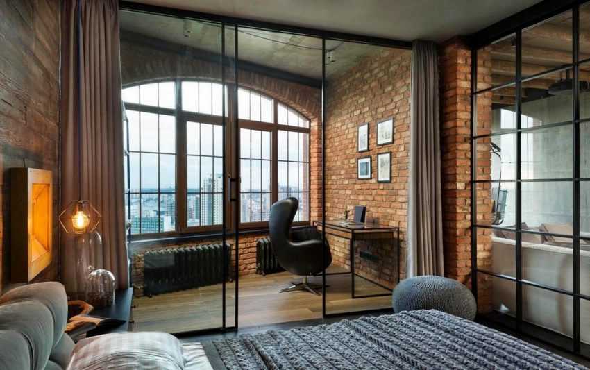 Еще один вариант мягко разделить пространство – шторы. При необходимости они сыграют роль перегородки, а в остальное время послужат дополнительным украшением спальни.