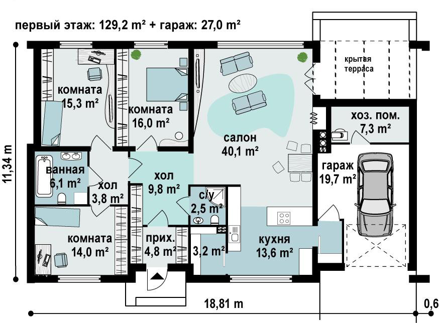 Создавая детальные проекты дома с гаражом и мансардой по каждому помещению, в них указывают такие детали как: