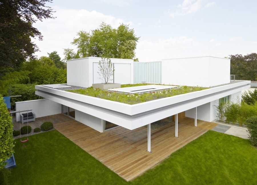 Дом с плоской кровлей не только эффектно выделяется на фоне достаточно однообразных строений со скатом, но и имеет определенные практические преимущества. Во-первых, такую крышу с легкостью можно превратить в террасу, зону отдыха с бассейном, спортивную площадку и т.д. Все зависит лишь от ваших пожеланий и несущих способностей сооружения. Во-вторых, убирать и ремонтировать плоскую кровлю значительно проще, чем скатную. И, наконец, за счет отсутствия стропильной системы проектирование и возведение плоской крыши обходятся дешевле.