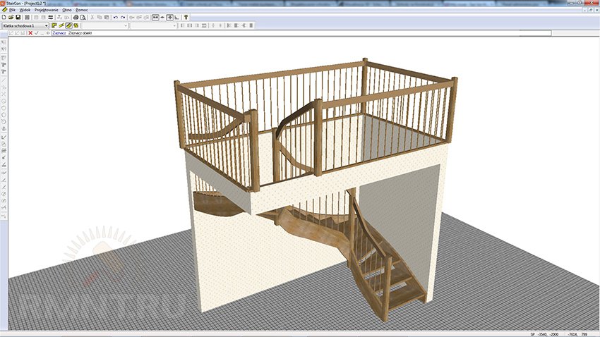 - StairDesigner. Это универсальна программа для проектирования лестниц. В ней возможен просмотр 2D и 3D-изображения. С ее помощью можно проектировать лестницы не только для жилых помещений, но и для промышленных зданий. Проектирование включает использование всех составляющих: перила, ступеньки, косоуры, балясины и другие. Проект составляет с учетом материалов и их свойств. В этой программе можно спроектировать изделие любого типа, от простой прямой до винтовой. Также можно создать лестницу нестандартной формы. Программа учитывает все строительные нормы. Также есть функции оптимизации формы лестницы, ступенек, перил. Опции контроля позволяют следить за тем, чтобы ступеньки не были слишком крутыми или маленькими, занимали большую площадь или располагались под большим углом. Таким образом, проектируя лестницу в этой программе можно быть уверенным в удобстве ее использования. На любом этапе проектирования можно увидеть ее в 3D-изображении. Недостатком этой программы является то, что языки интерфейса – английский и немецкий, нет русского.