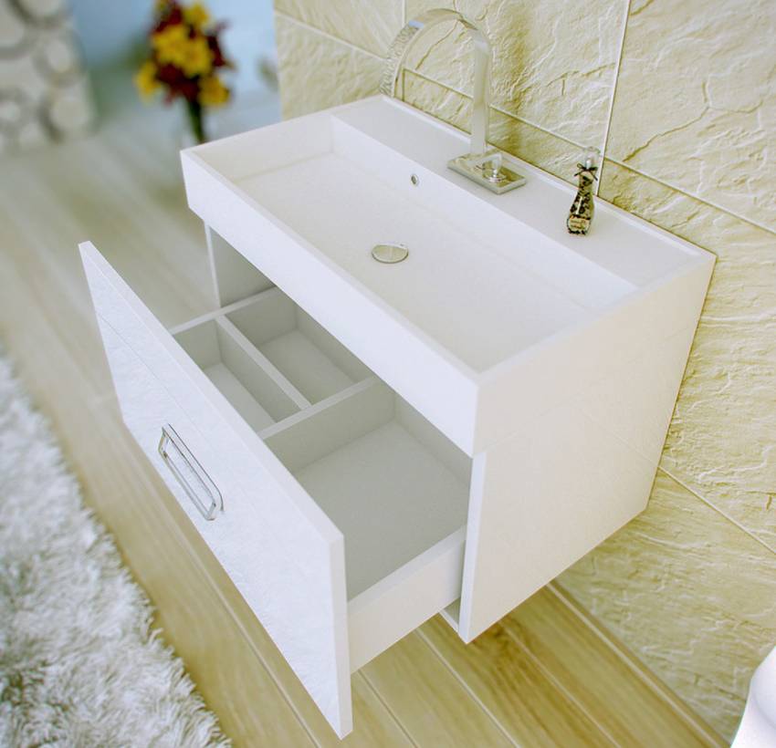 Конструкция подвесных изделий имеет усиленный корпус, благодаря этой особенности, мойка с тумбочкой для ванной весьма надежна